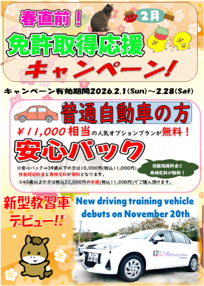 休校日情報や、オトクなキャンペーンなど、和泉自動車教習所からの最新情報をお届けします。