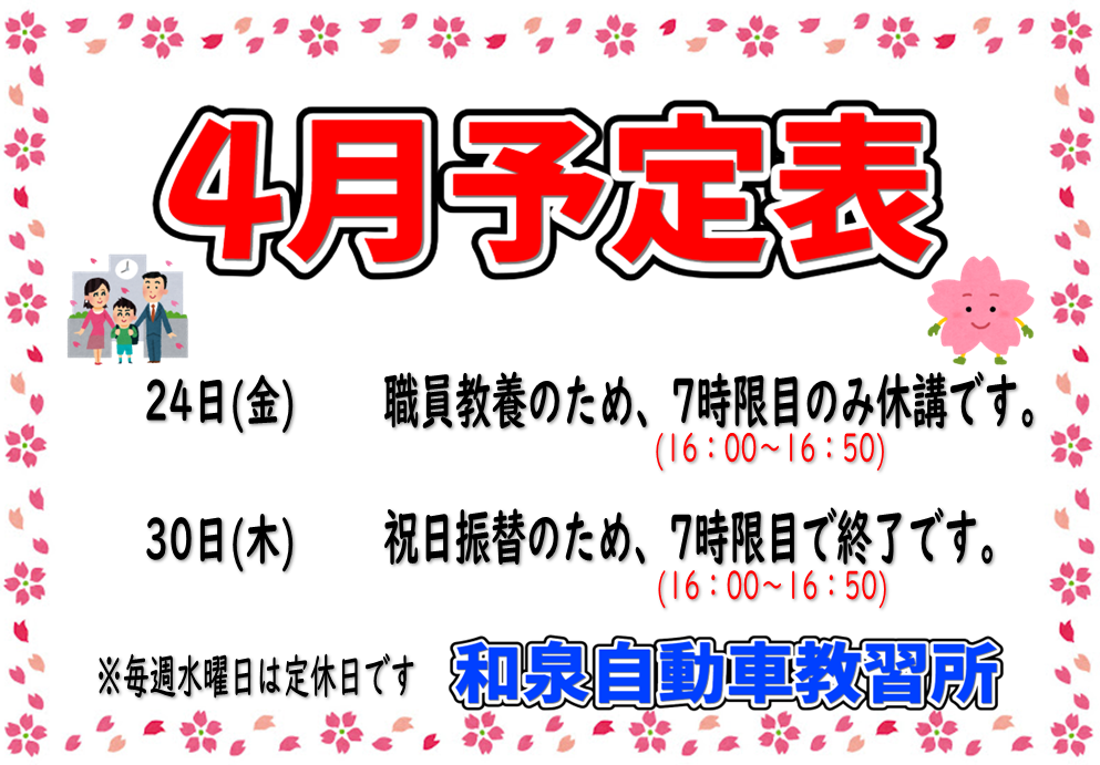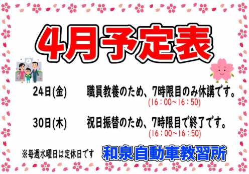 4月学科時限表