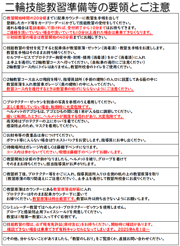 教習生の皆様にはご迷惑をお掛けいたしますが、ご了承くださいますようお願い申し上げます。