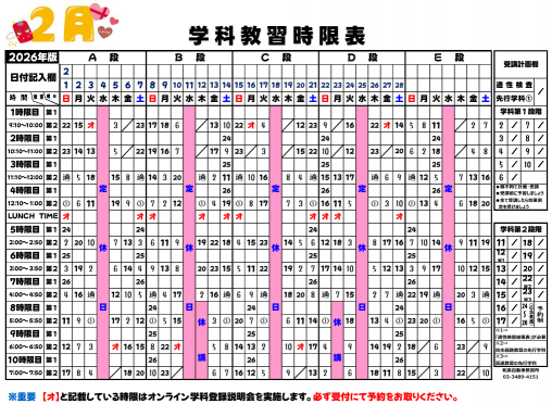 当面は1段階の学科のみ(先行学科除く)となり、2段階は全て対面授業となります。